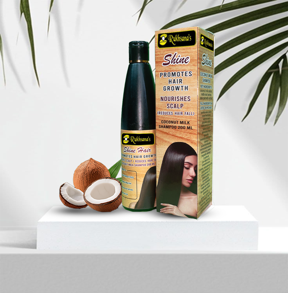 अब बालों को दें प्राकृतिक देखभाल Rukhsana’s Shine Hair Shampoo के साथ। नारियल दूध से भरपूर यह शैम्पू स्कैल्प को बिना रूखा किए साफ करता है, कमजोर बालों को मज़बूती देता है और उन्हें चमकदार और मुलायम बनाता है।
